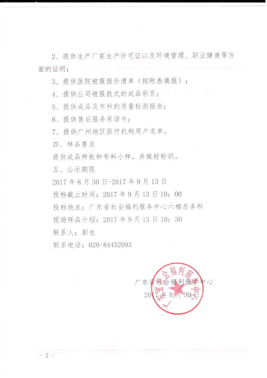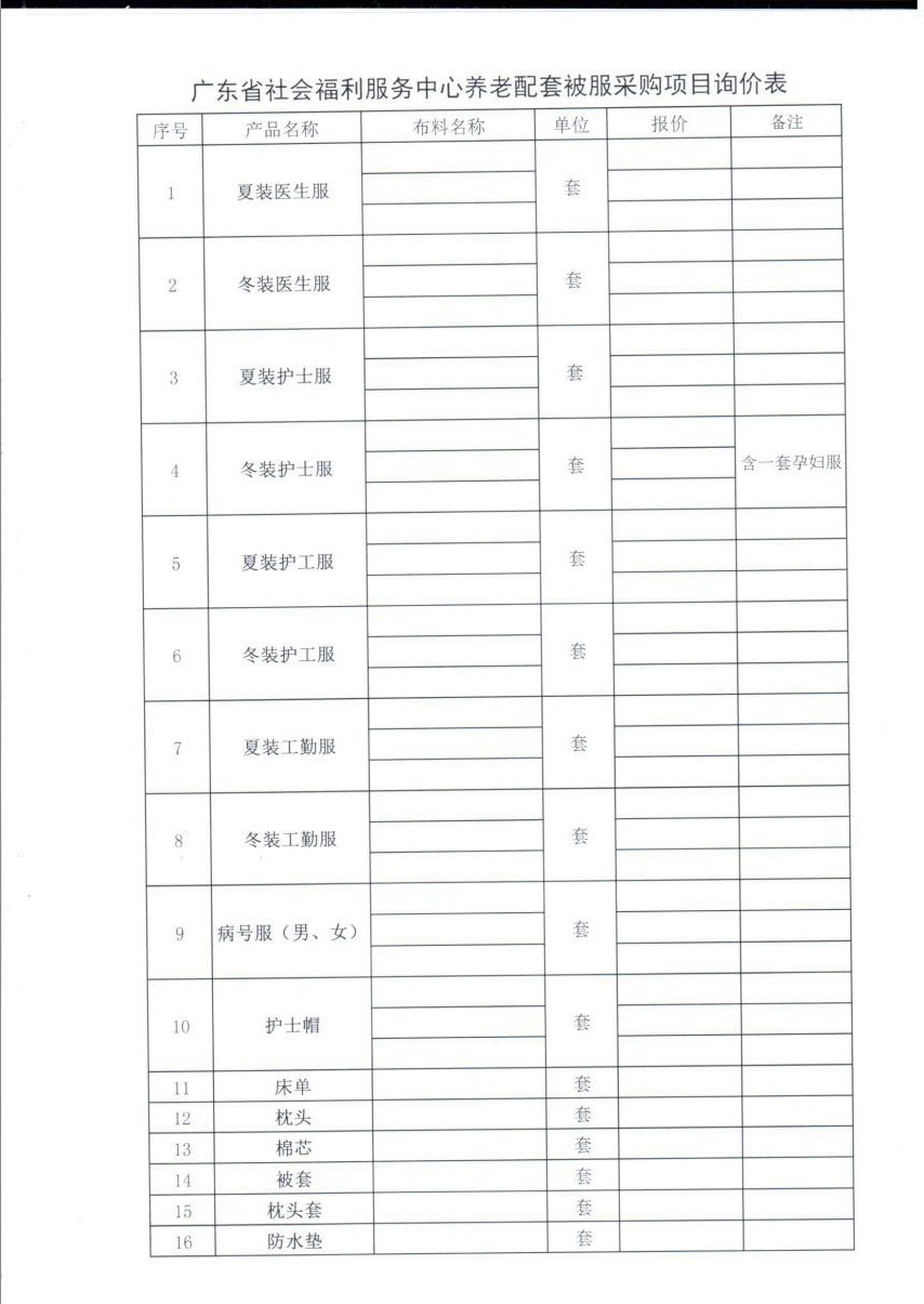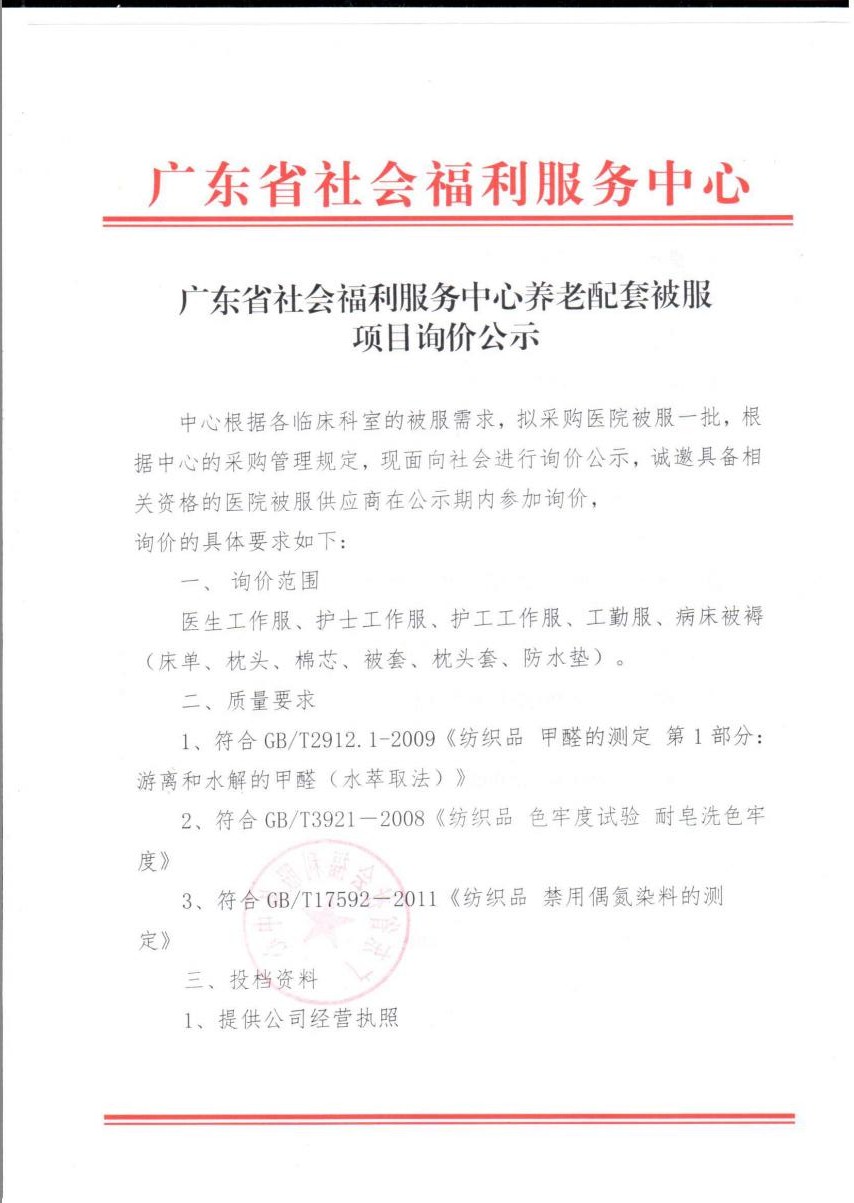 广东省社会福利服务中心养老配套被服项目询价公示