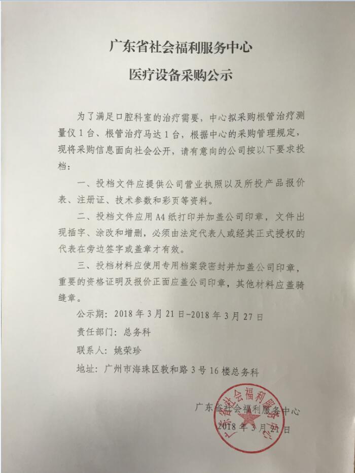 广东省社会福利服务中心医疗设备采购公示