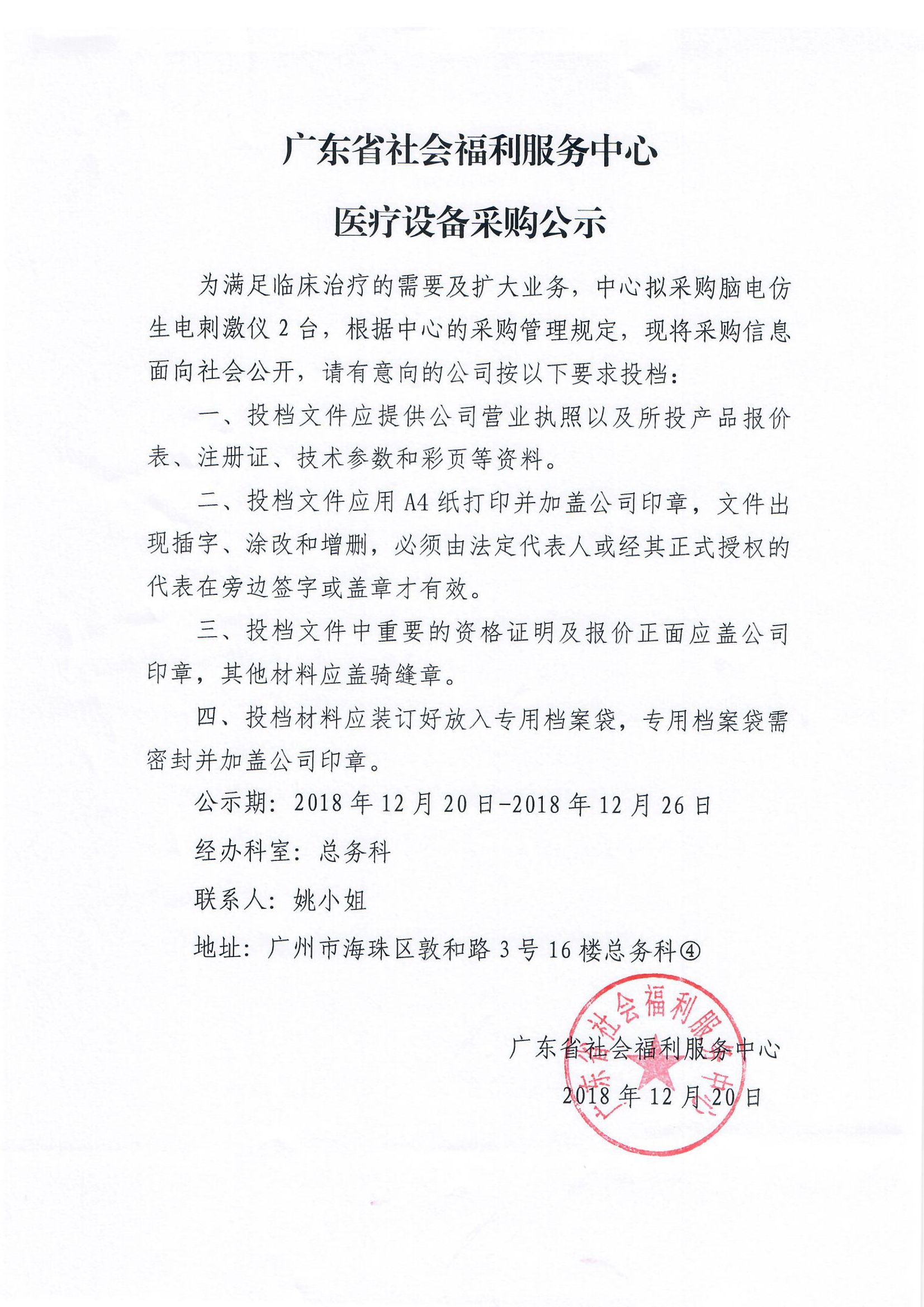> 广东省社会福利服务中心(广东江南医院)医疗设备采购公示