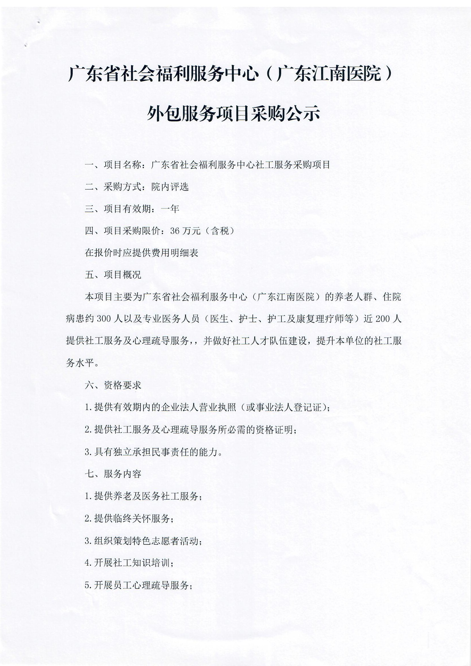 广东省社会福利服务中心(广东江南医院)社工服务项目采购公示
