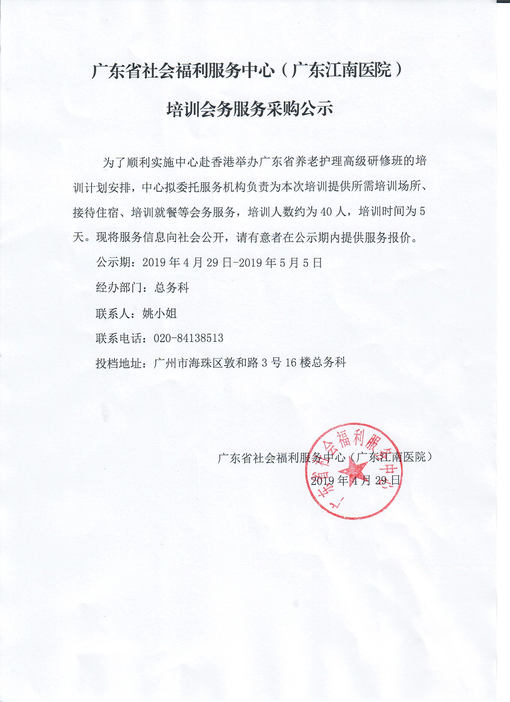 广东省社会福利服务中心(广东江南医院)培训会务服务采购公示