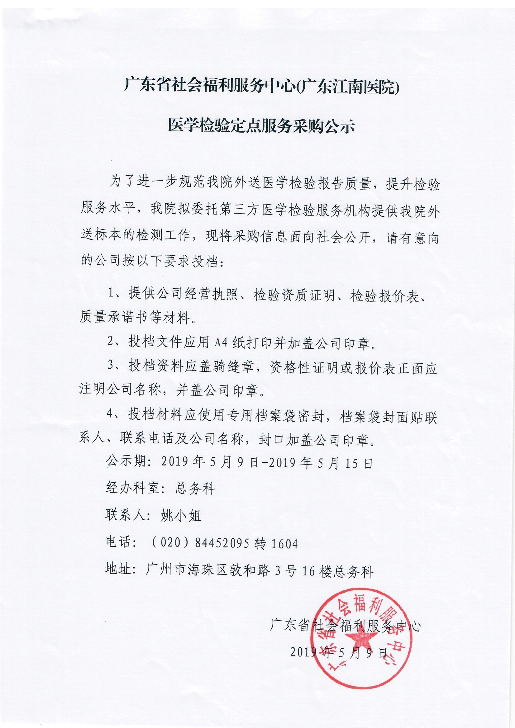 广东省社会福利服务中心(广东江南医院)医学检验定点服务采购公示