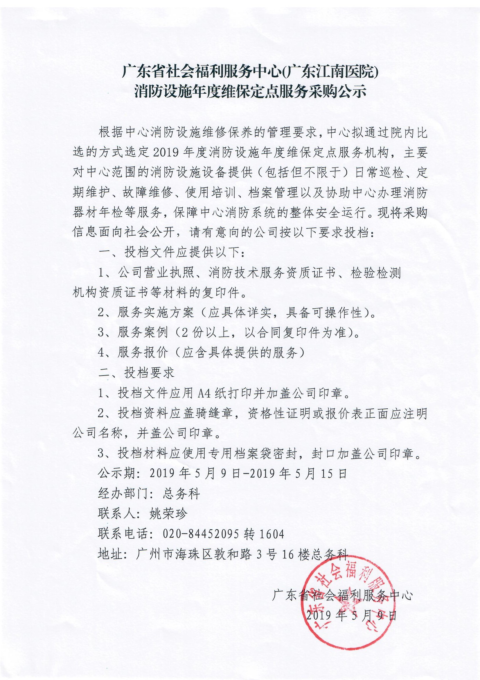 广东省社会福利服务中心(广东江南医院)消防设施年度维保定点服务采购公示