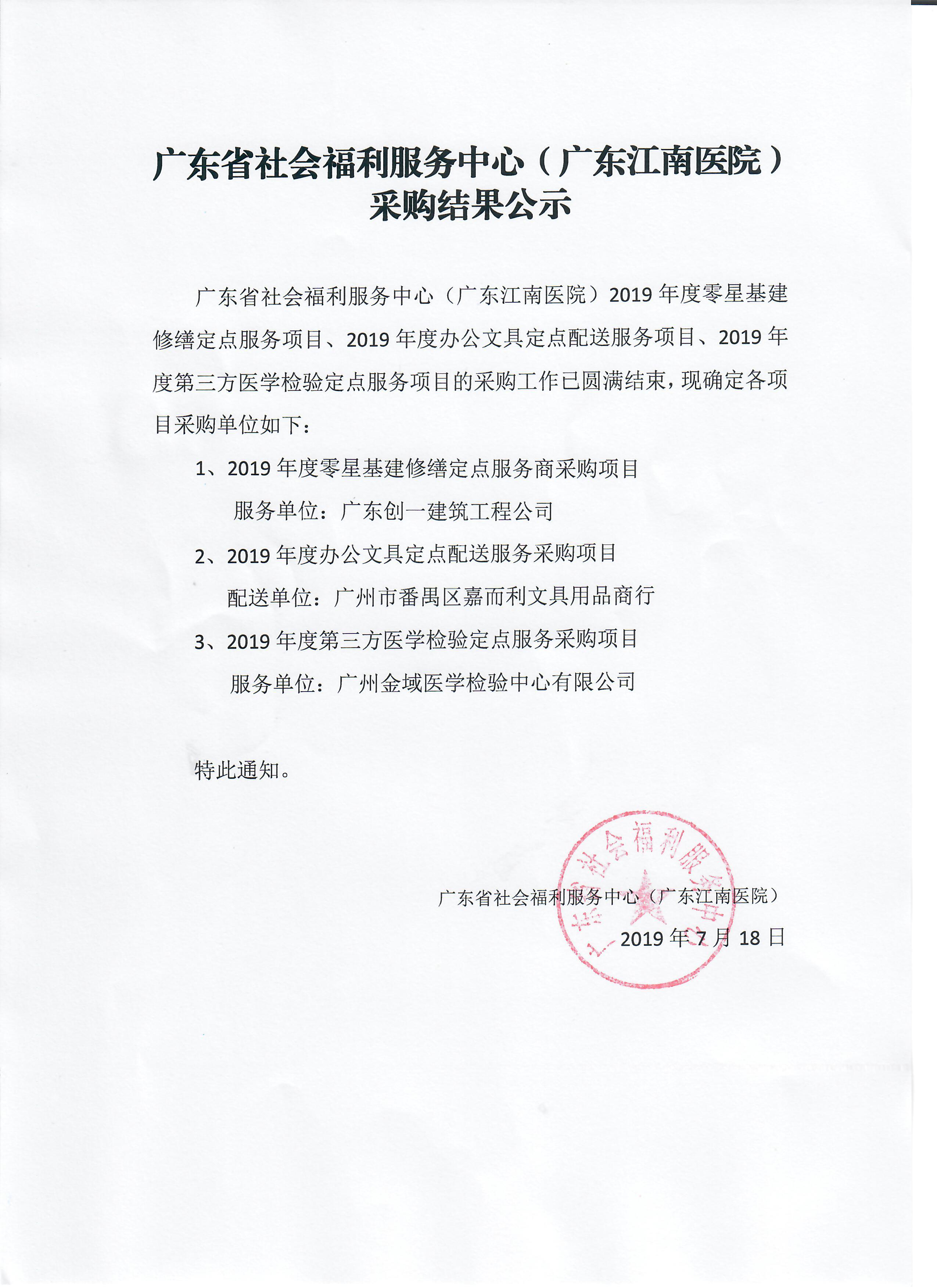 广东省社会福利服务中心(广东江南医院)采购结果公示