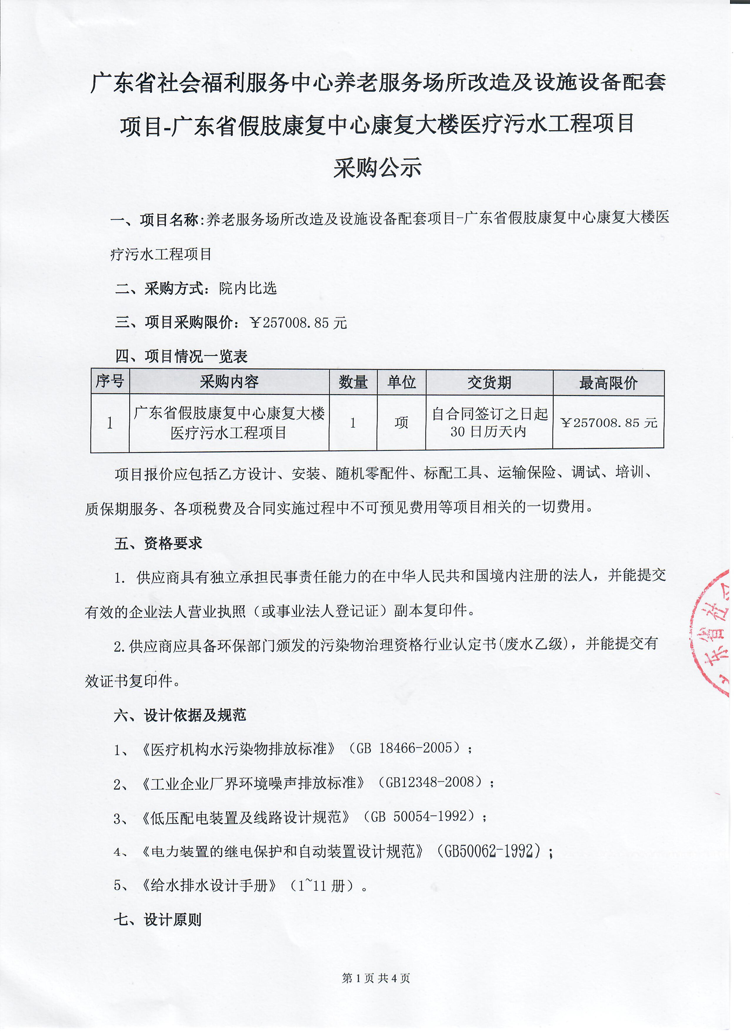 广东省假肢康复中心康复大楼医疗污水工程项目采购公示